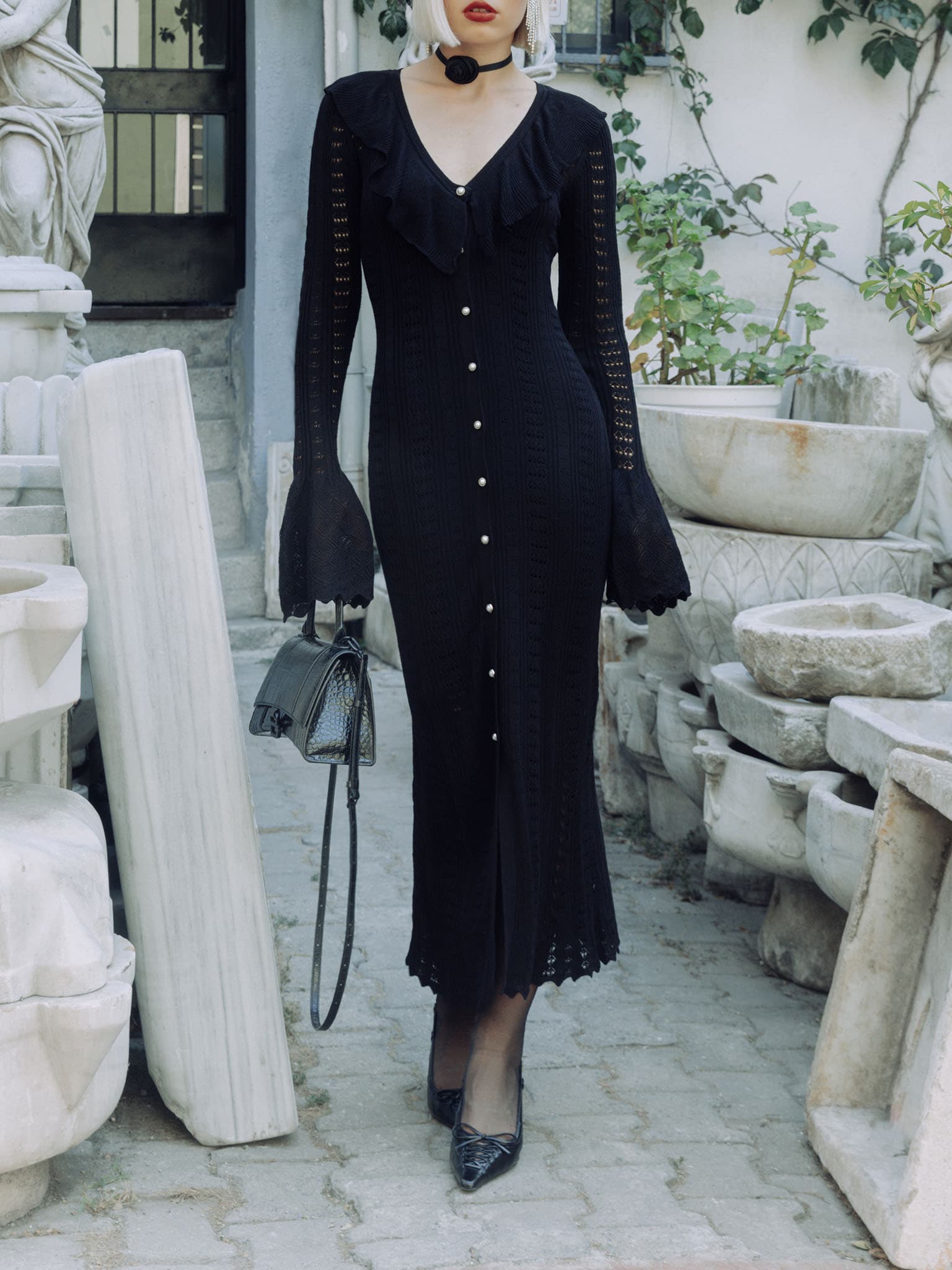 Платье макси из трикотажа ажурной вязки :: LICHI