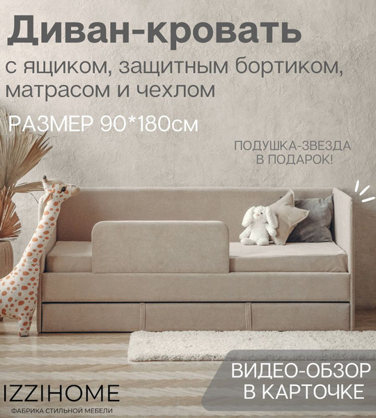 Детский диван-кровать 90*180 см DREAM бежевый с ящиком, бортиком