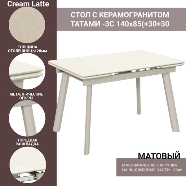 Стол обеденный КУБИКА Раздвижной Стол с керамогранитом Татами-3C