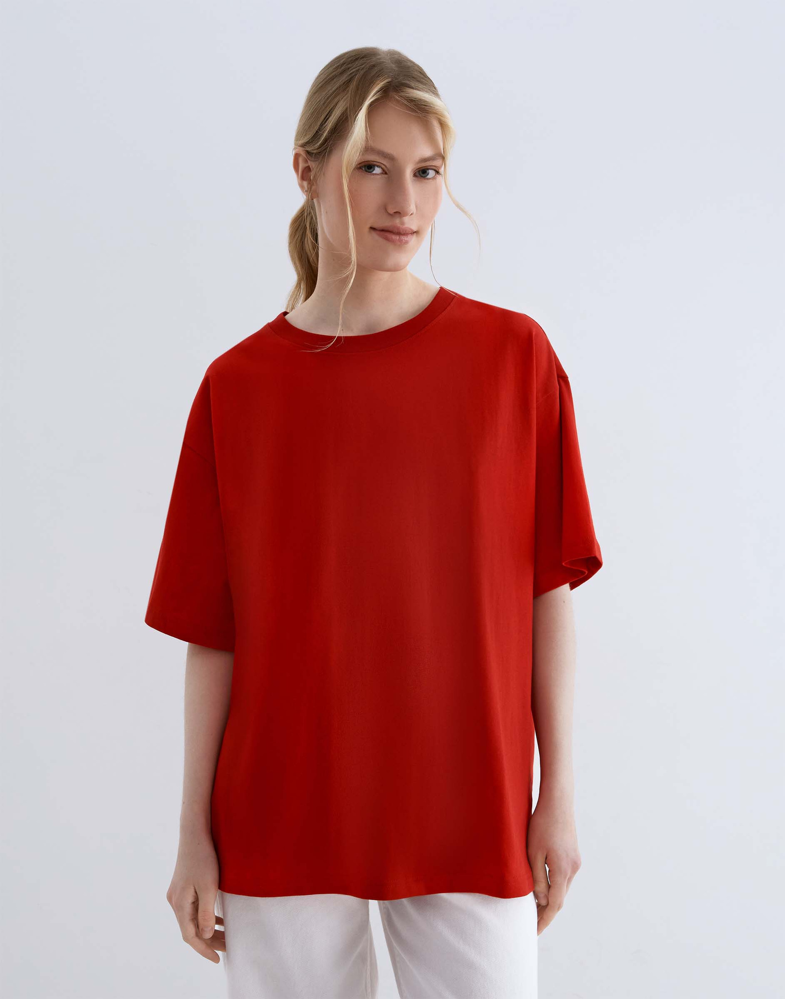 Красная базовая футболка oversize из джерси GKT027029-3 купить по цене