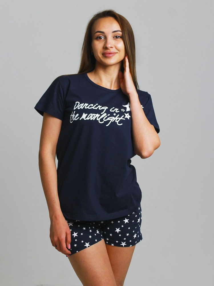 Пижама Женский Sebo с шортами, с футболкой Хлопок, размер 44 Звезды