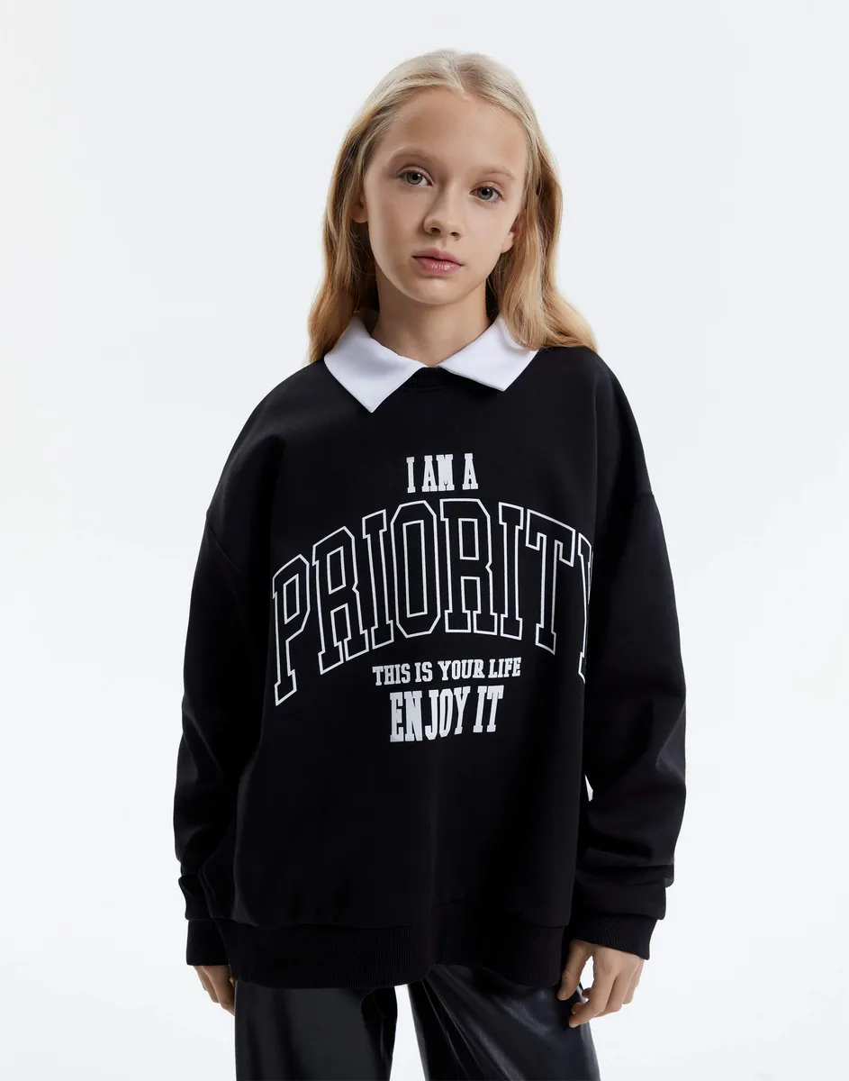 Чёрный свитшот oversize с воротником и принтом GAC025161-1 размер 128