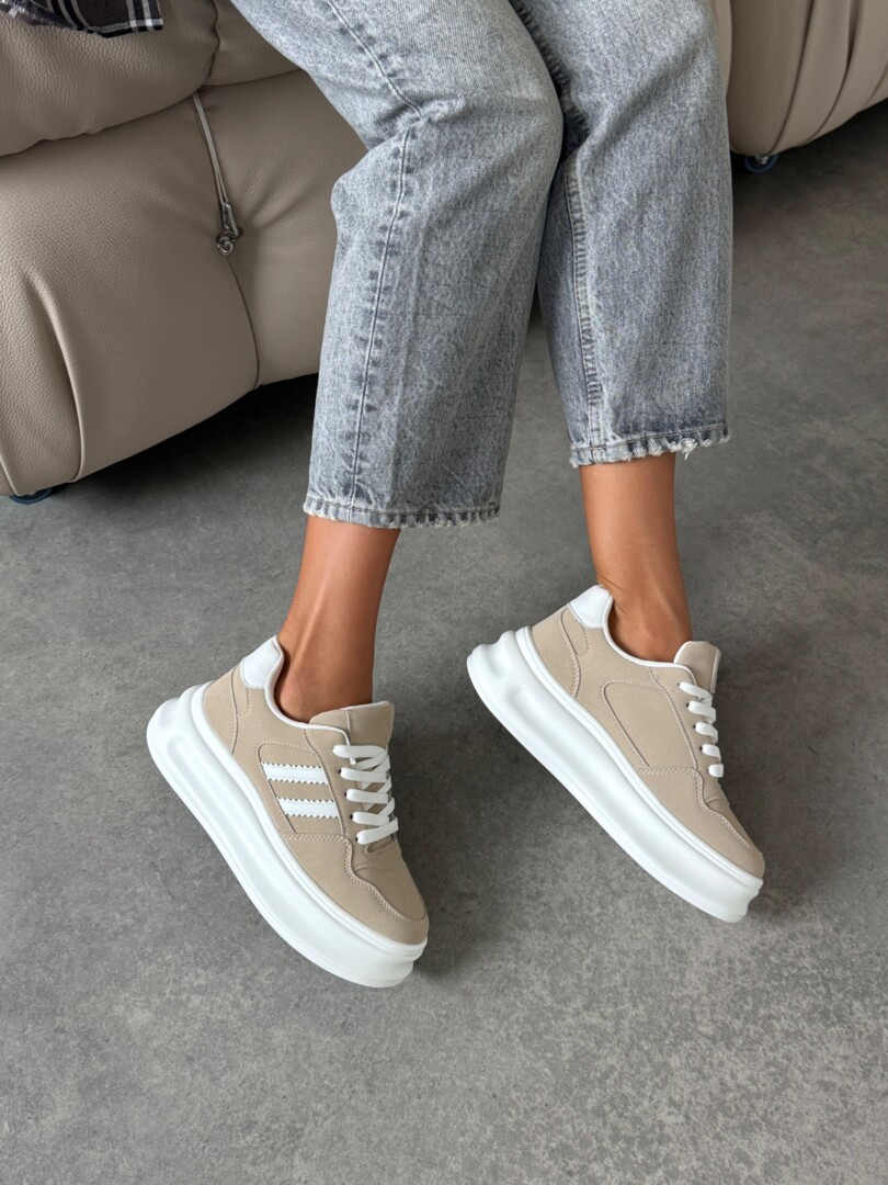 Кеди на високій платформі бежеві з білими смужками