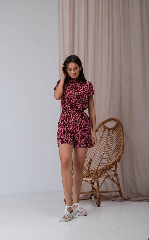 Комбинезон летний с шортами короткими рукавами леопардовый принт