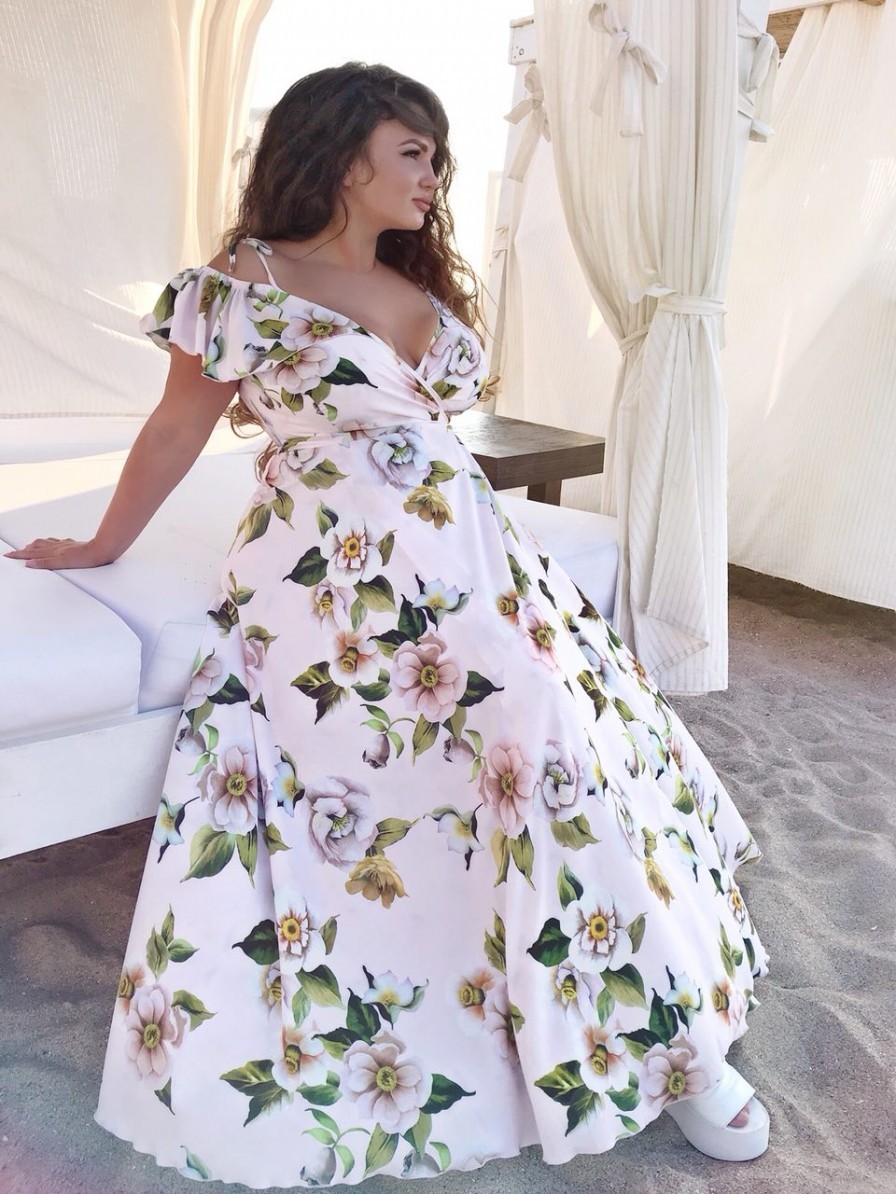 Длинное платье в цветы Veles M/L бежевый 43431156 от продавца: CityLady