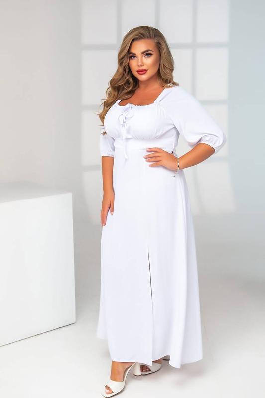 Плаття довге з ліхтариками з квадратним вирізом декольте зі складкою із