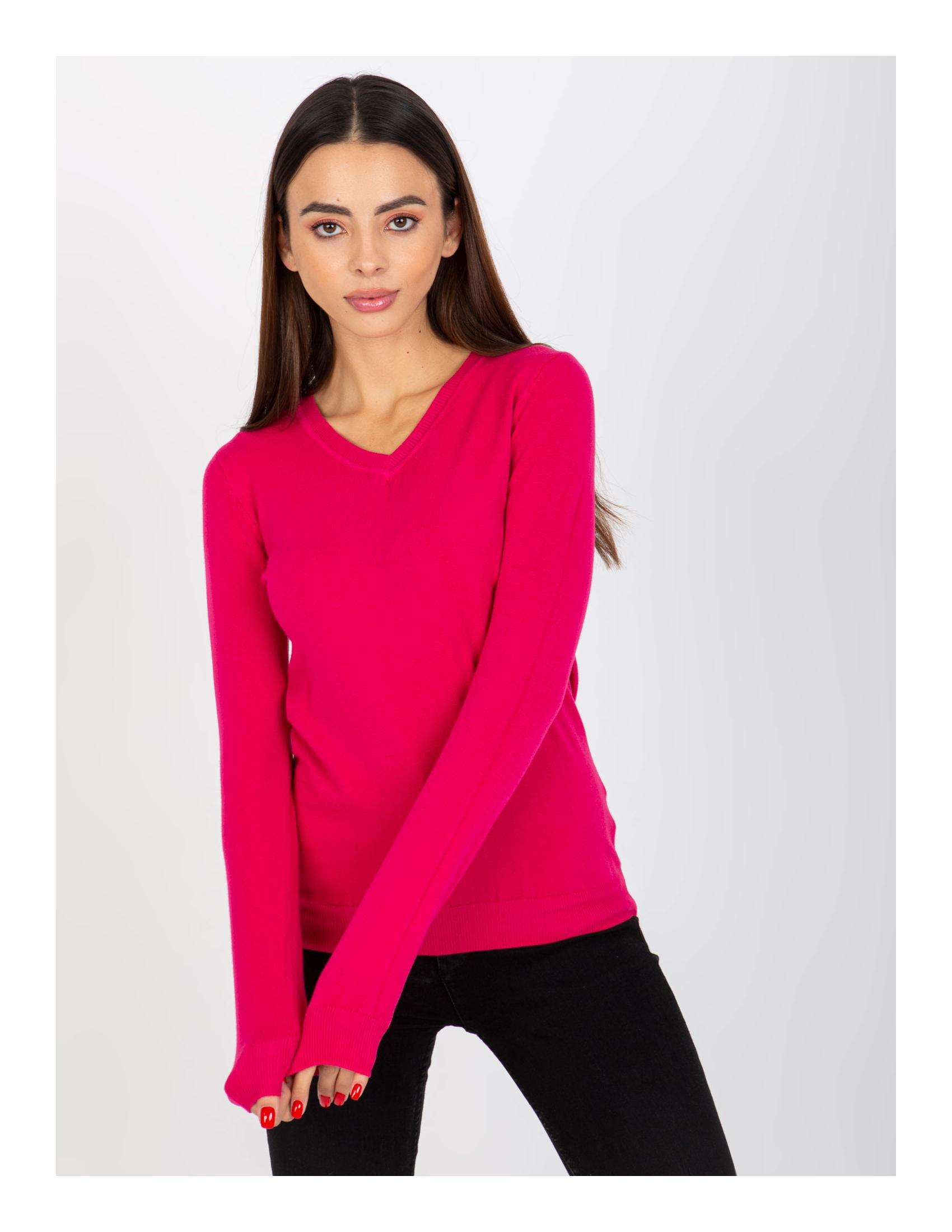 Тънък пуловер с V-образно деколте в цвят фуксия