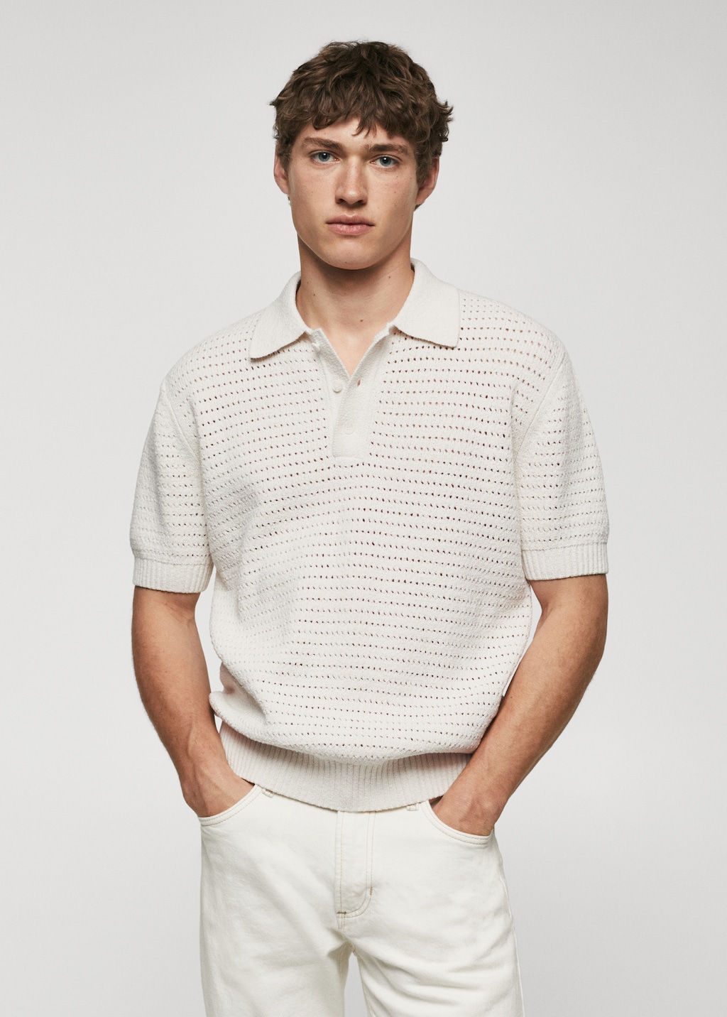 Хлопковое поло из ажурного трикотажа