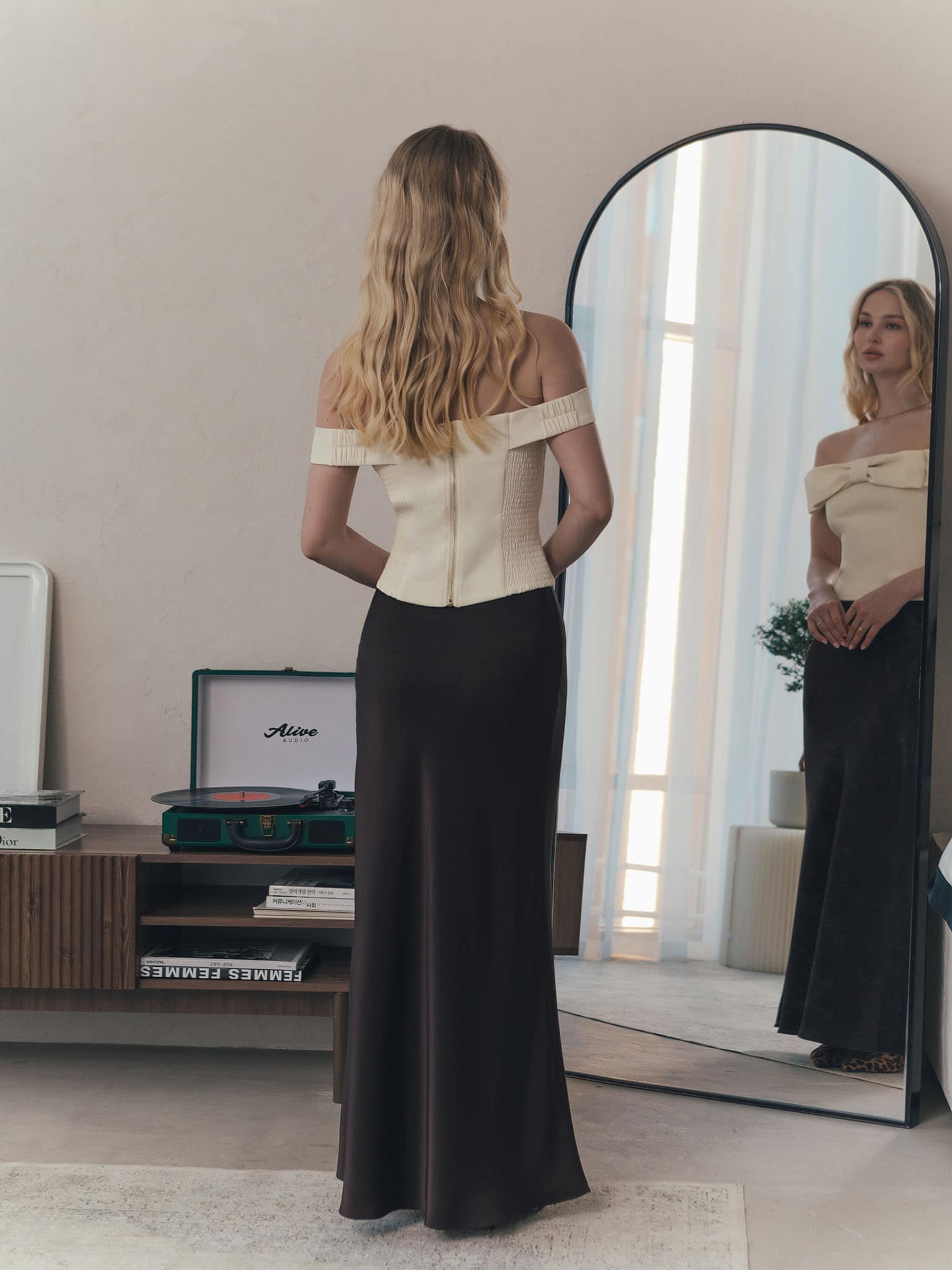 Корсетный топ с открытыми плечами и бантом спереди :: LICHI
